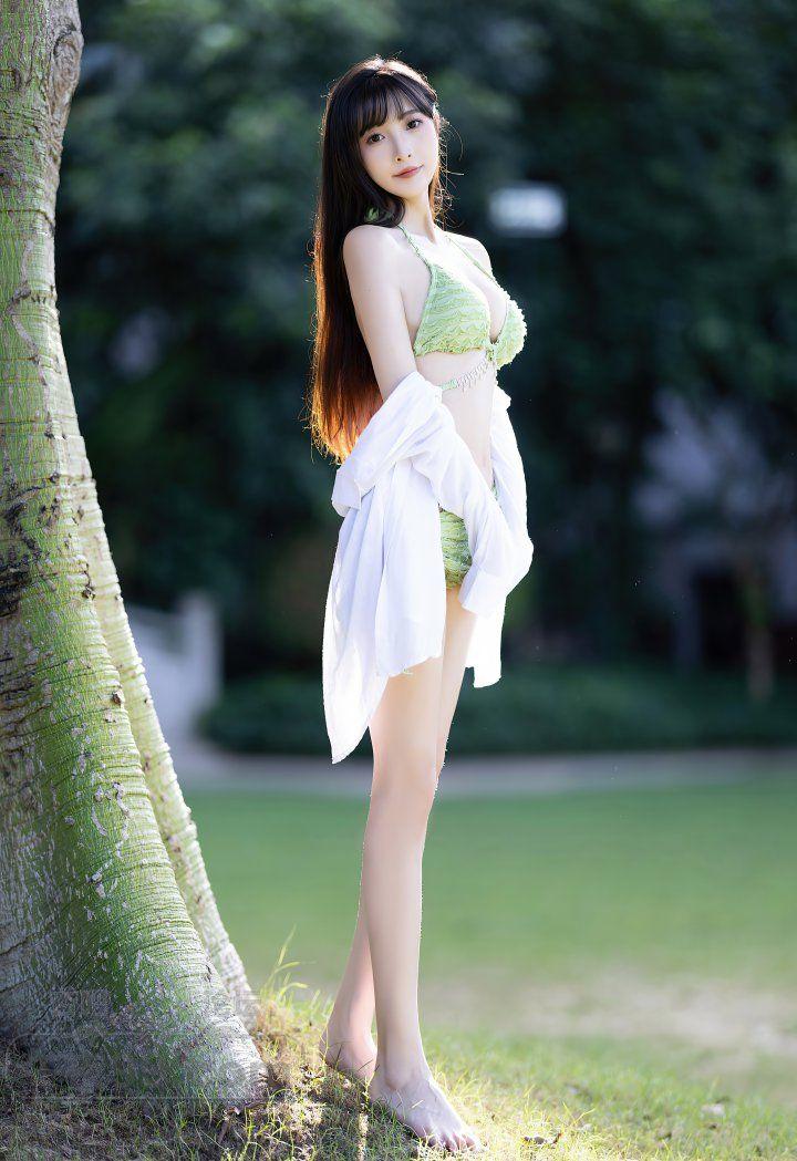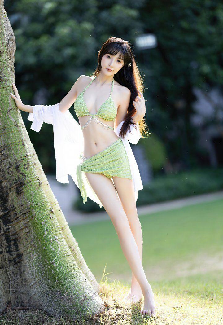 性感年轻少女浅绿色比基尼装前凸后翘好身材【16P】